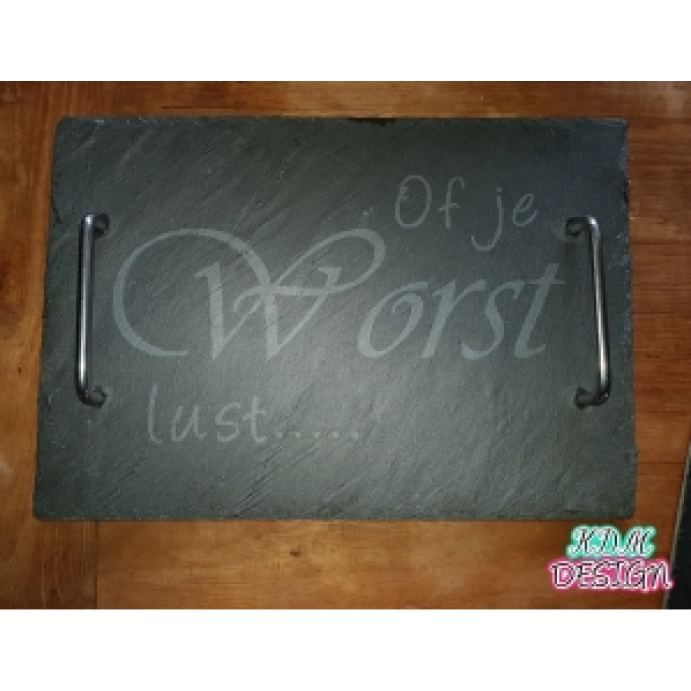 Serveerplank van Leisteen met handvatten en tekst naar keuze.
