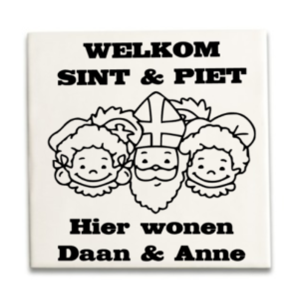 Supertof wit tegeltje met opdruk Welkom Sint en Piet hier wonen ......