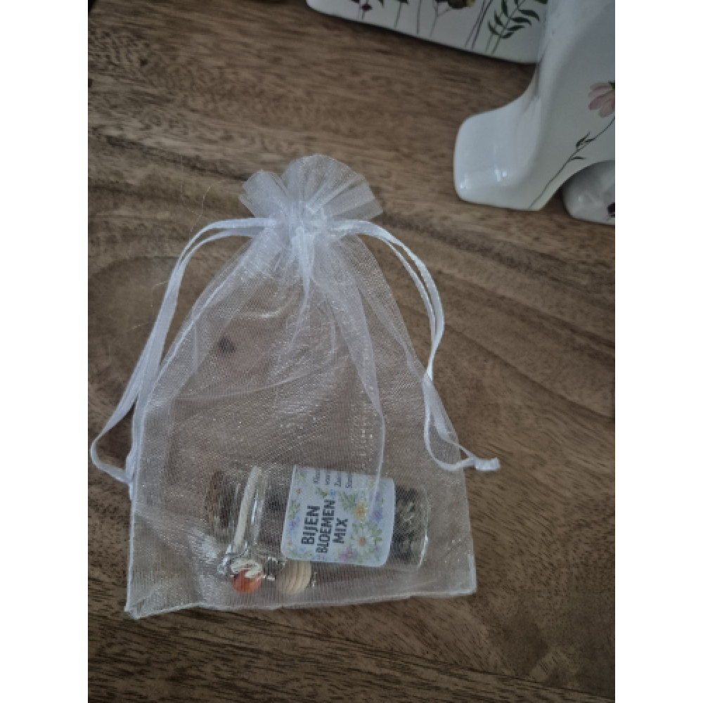 Hoe schattig, dit flesje gevuld met zaadjes voor bloemen die bijen, vlinders en andere insecten aantrekken.