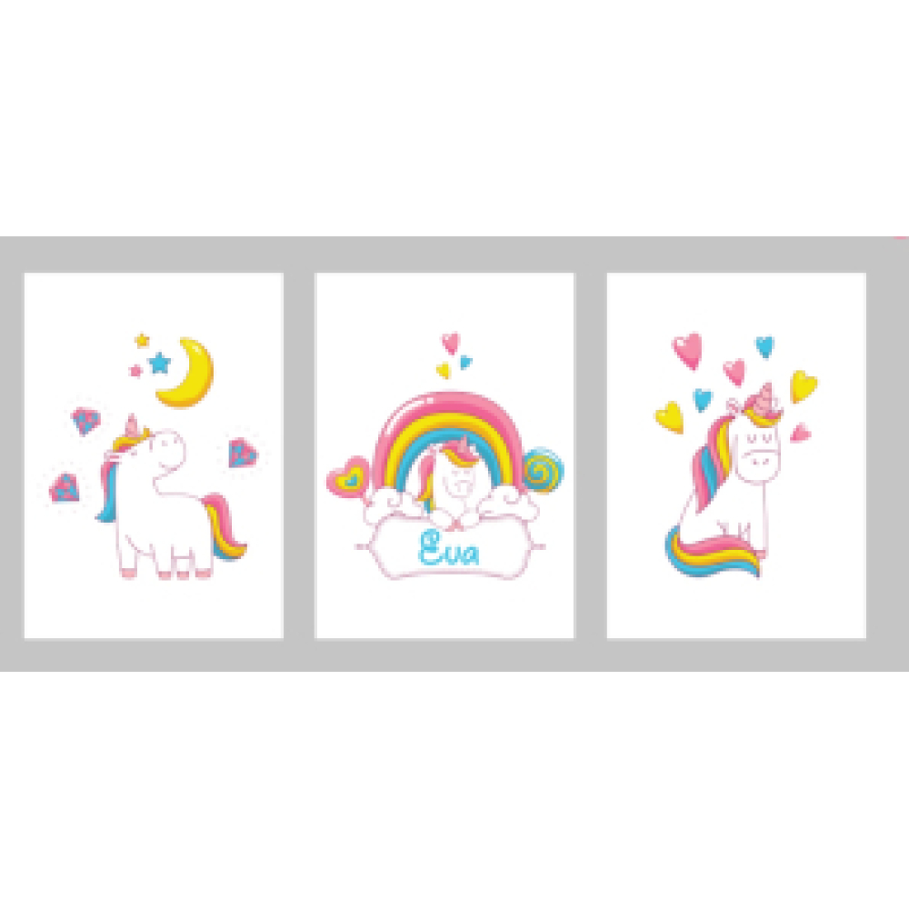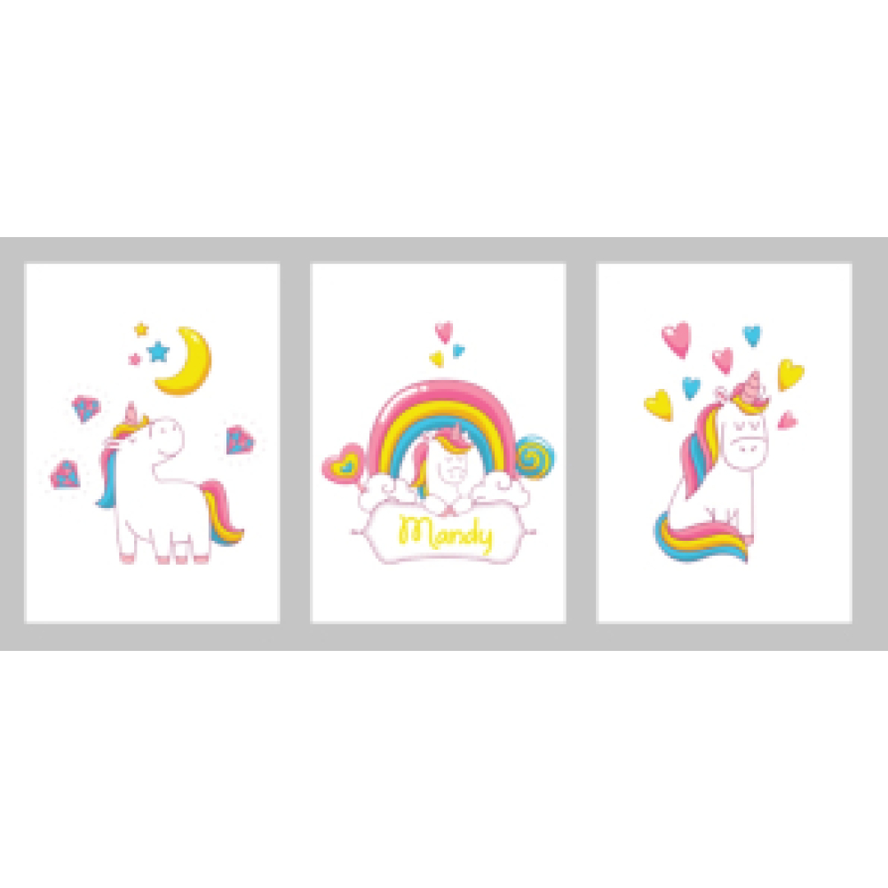 Set van 3 posters met eenhoorns en persoonlijke naam