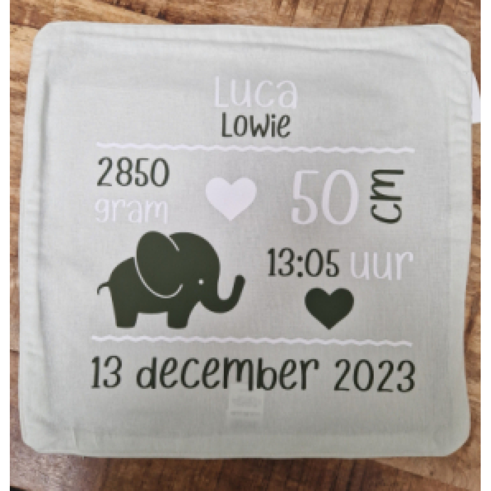 Standaard te leveren met verschillende afbeeldingen, maar ook te personaliseren aan de hand van het geboortekaartje. Het geboortekaartje kun je uploaden, waarna we kijken of het mogelijk is om het geboortekaartje te gebruiken en zullen dan eerst een proefdruk maken.