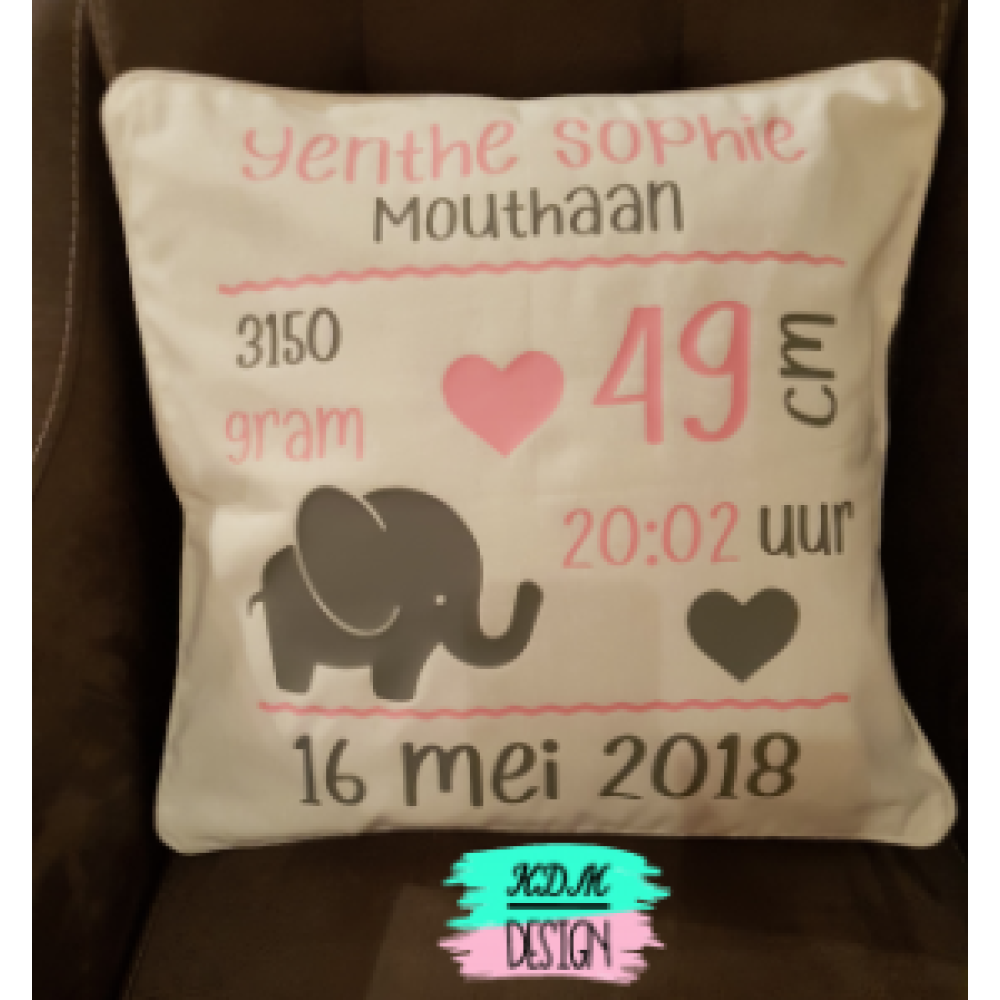 De geboortekussens zijn 40 x 40 cm, van 100% katoen en worden standaard geleverd zonder binnenkussen.