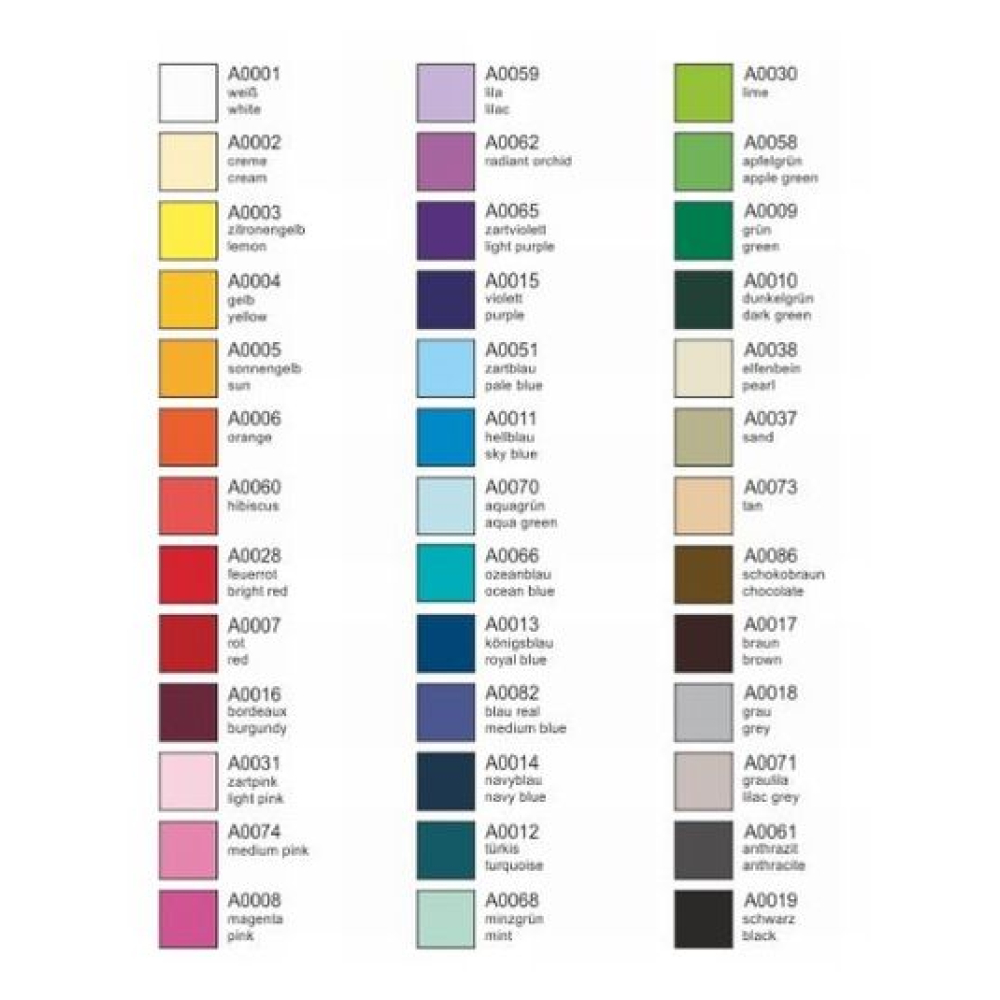 Zoek je een kleurtje dat er niet bijstaat, laat het dan even weten. Er zijn heel veel mogelijkheden.