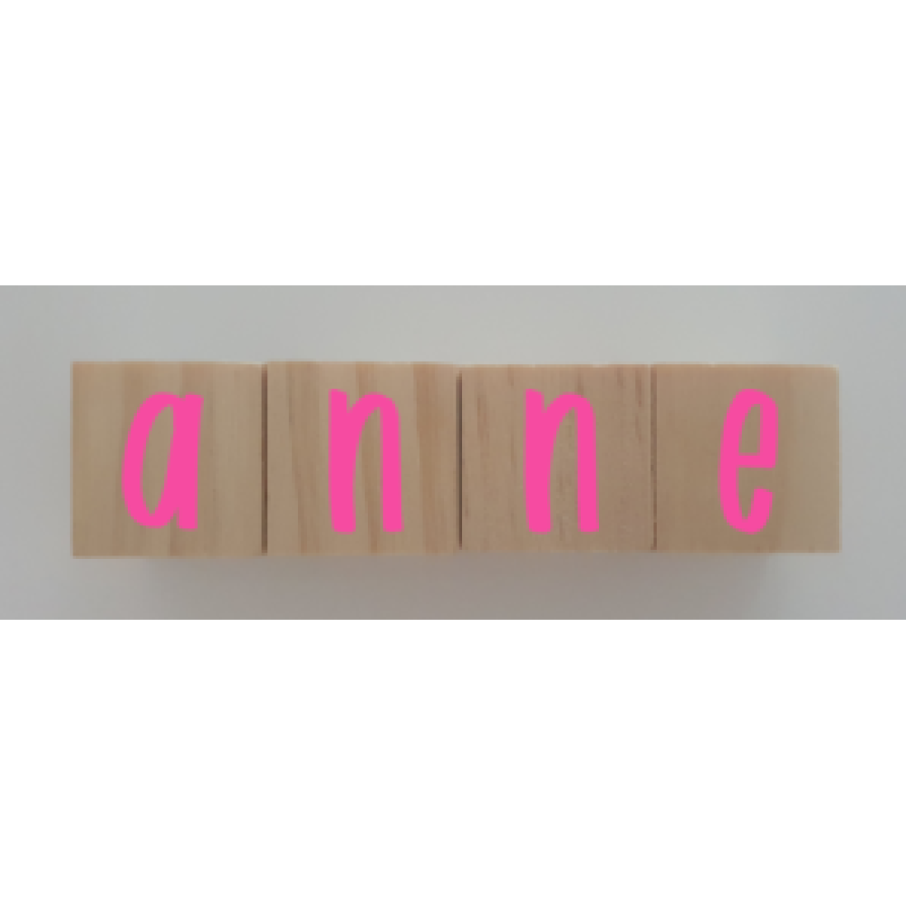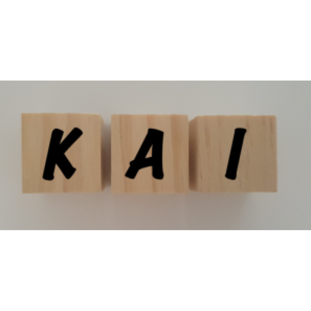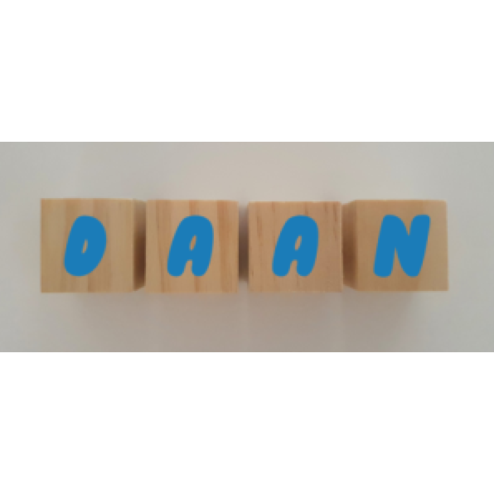 Op elk blokje past 1 letter. Wil je een naam bestellen van 4 letters, dan bestel je 4 blokjes.