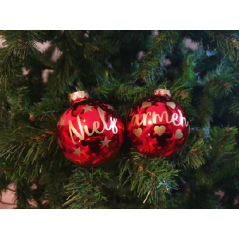 Leuke naamstickers om zelf op een kerstbal te plakken.