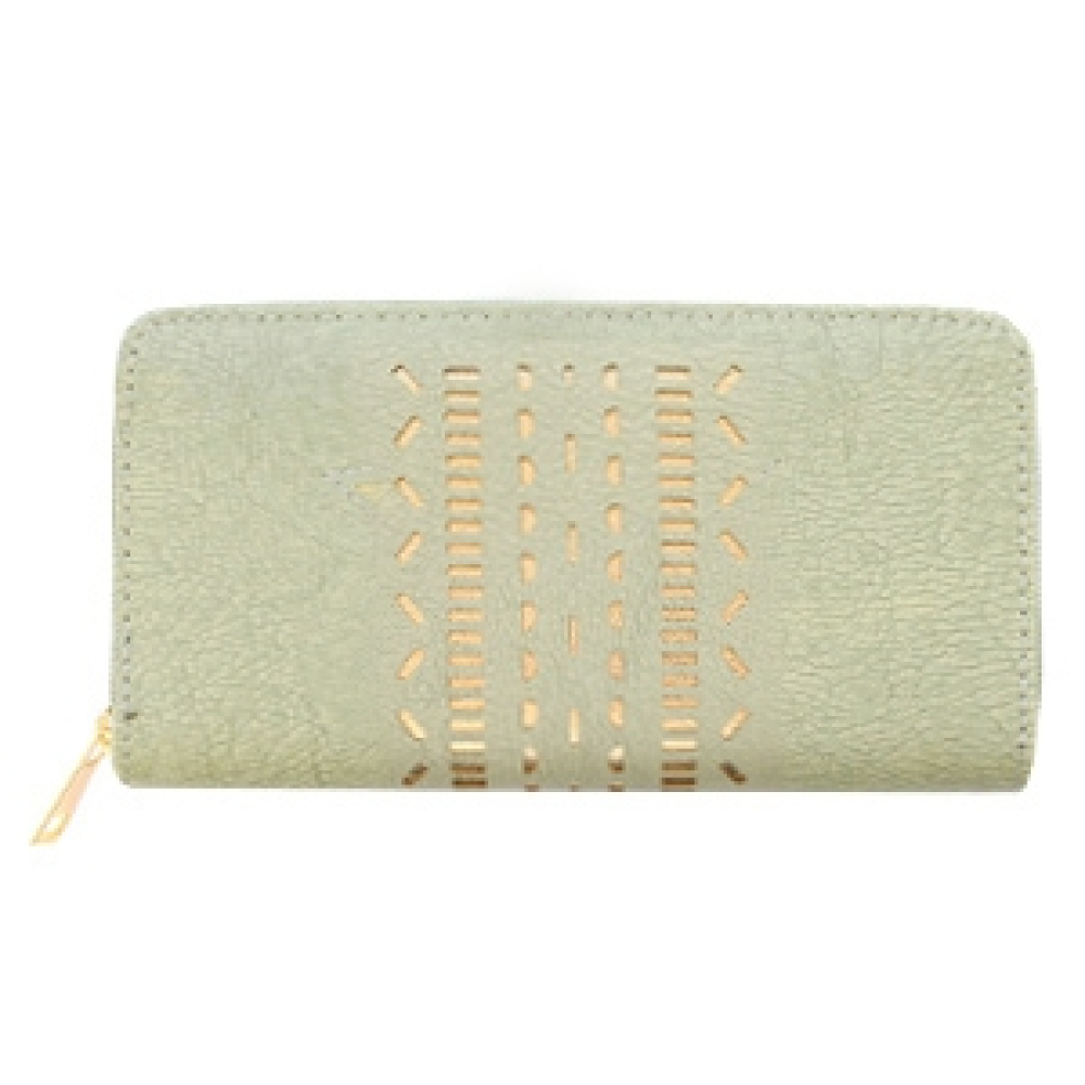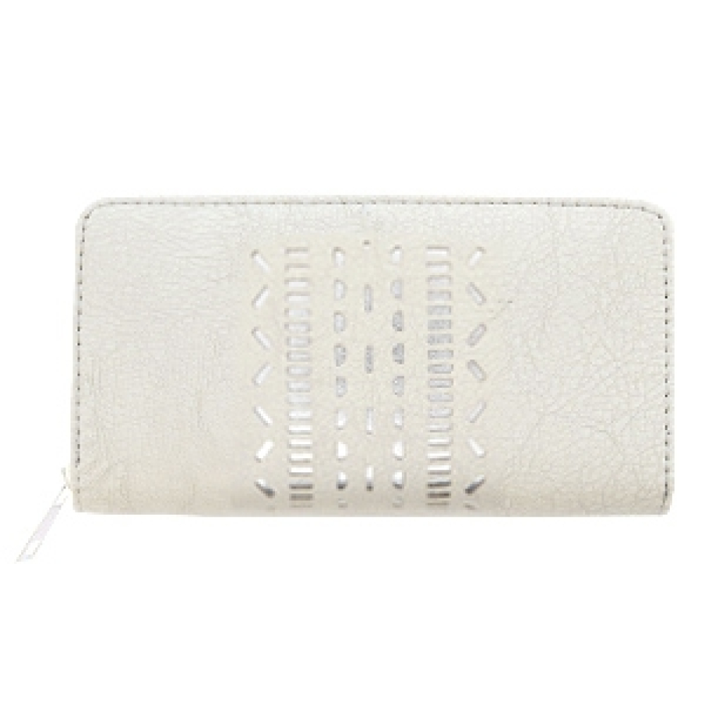 Deze portemonnee is voorzien van een bijpassende rits met zilveren of rosegouden sluiting.