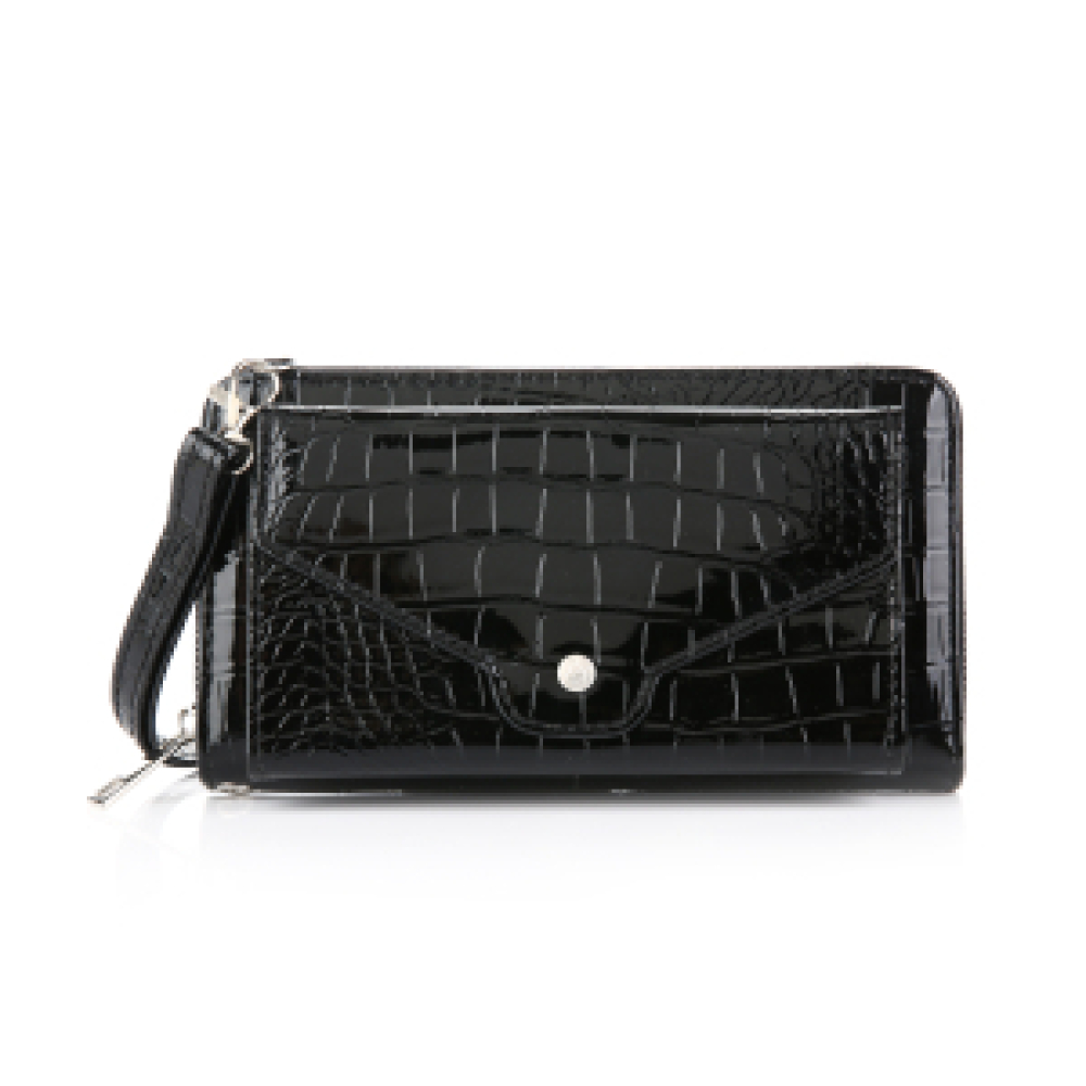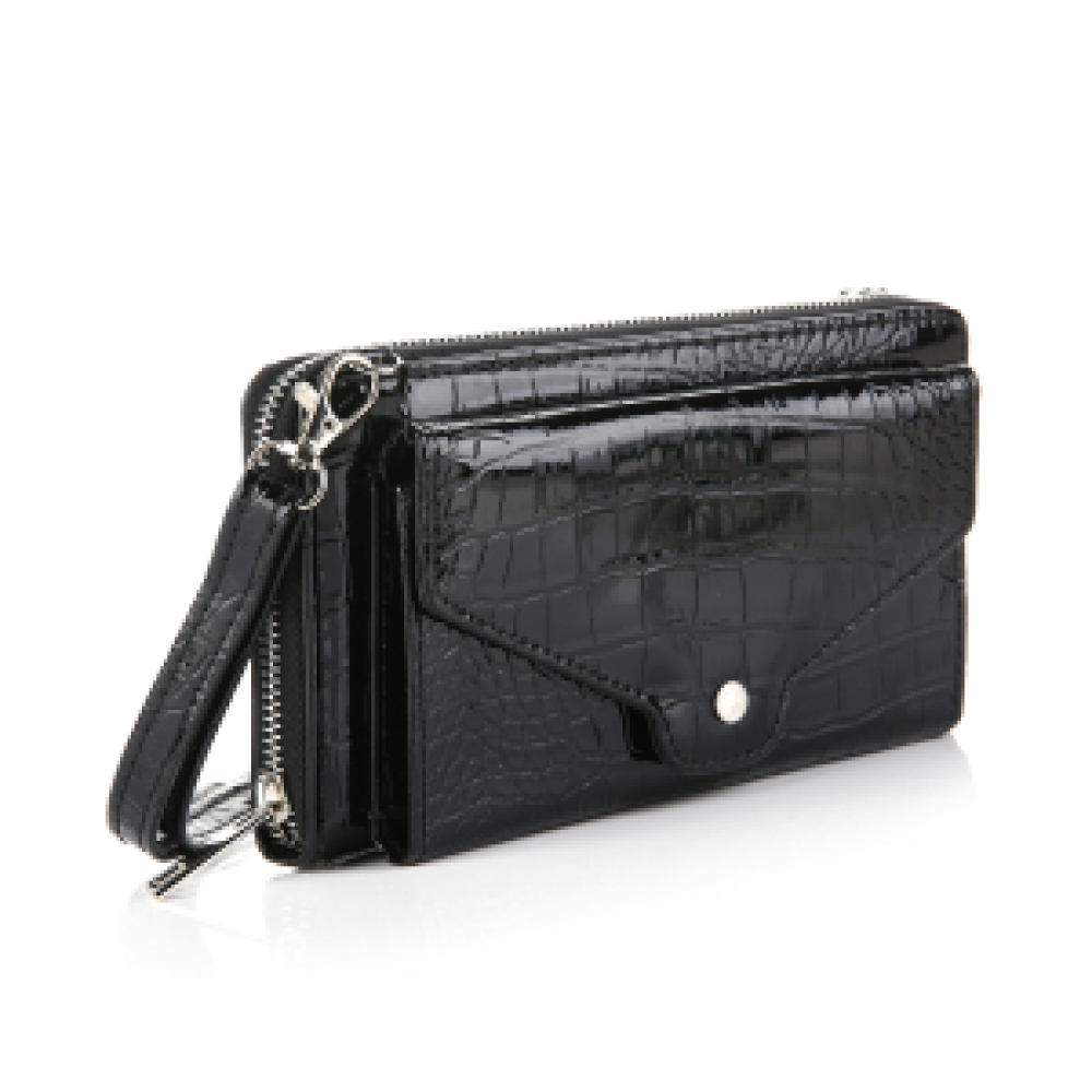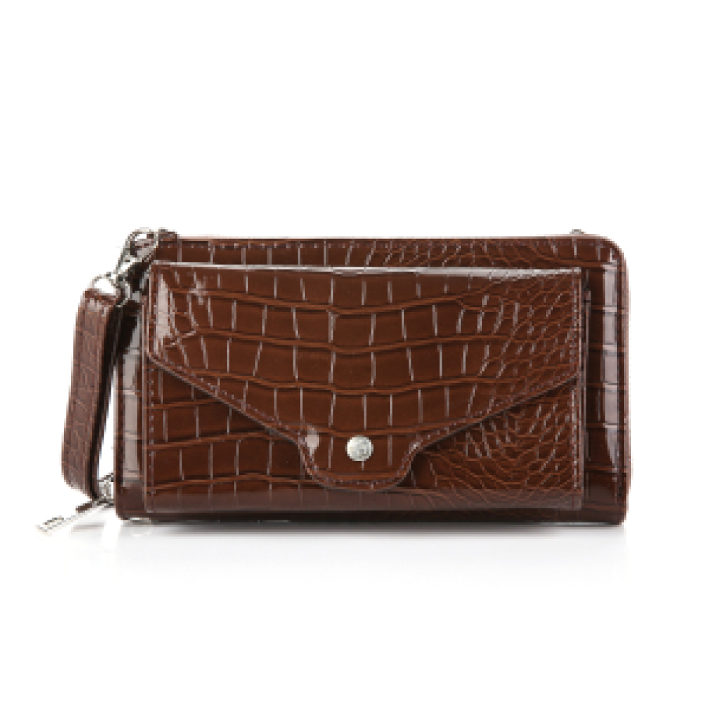 Mooie, grote portemonnee met vak aan de voorkant voor je telefoon. Voorzien van afneembare schouderband en polsbandje