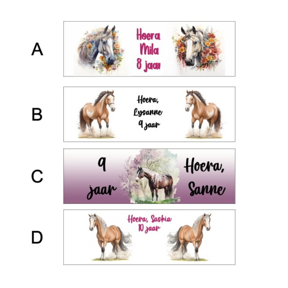 Geef bij je bestelling in het tekstveld door welk printje je wilt (welk nummer) en welke naam en leeftijd er op de wikkel mag.