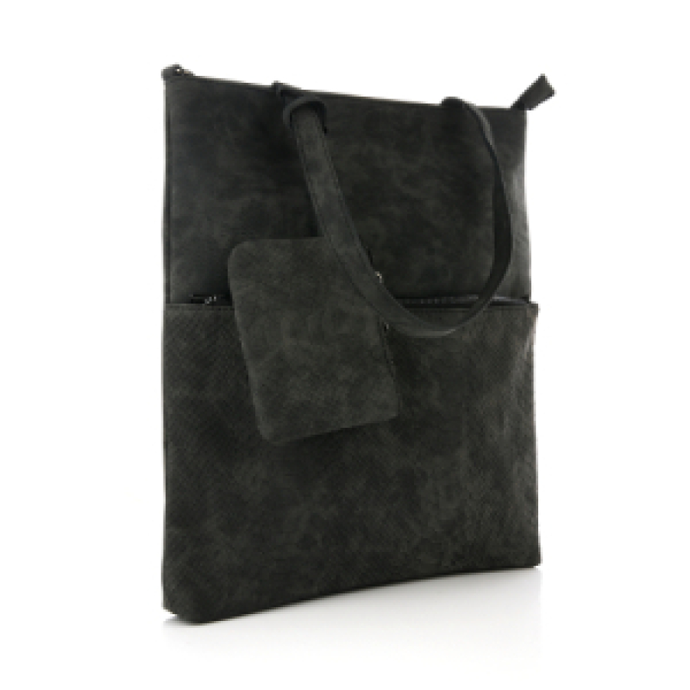 De tas zelf is één groot vak afsluitbaar met een rits en voorzien van een klein vakje afsluitbaar met een rits.