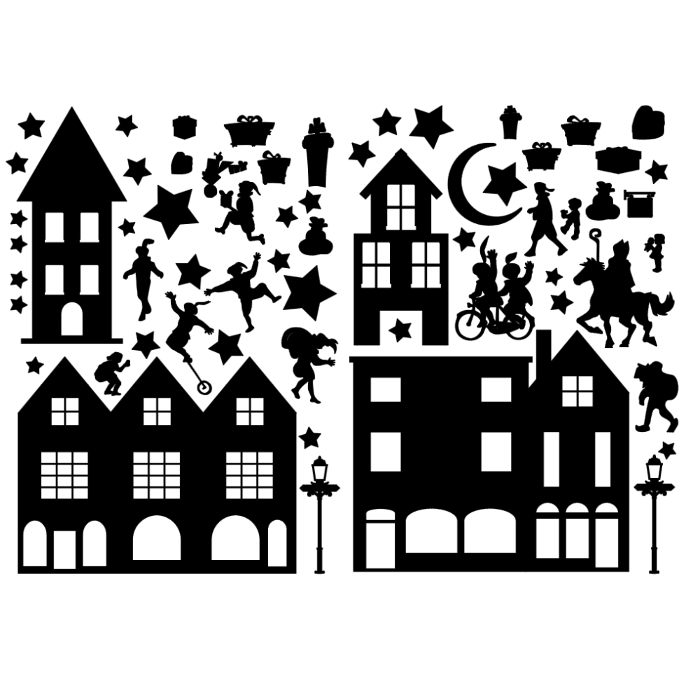 Bestel je onze Sint raamstickers, dan bestel je de Kerst aanvulset voor maar € 2,50 mee. Je ontvangt dan de kerst raamsticker onderdelen zonder de huisjes.