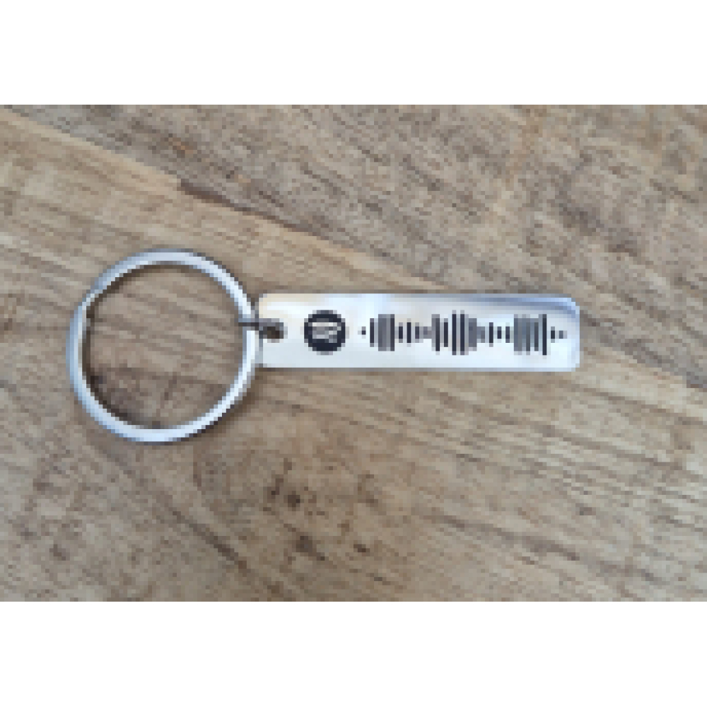 Als je op zoek bent naar een tof en persoonlijk cadeau, dan is deze sleuterhanger met code waarmee je in Spotify jouw favoriete liedje kunt beluisteren, een goed idee.