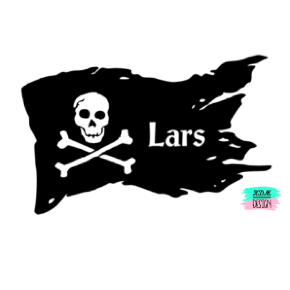 Stoere deur/raam/muursticker piraatvlag met naam.