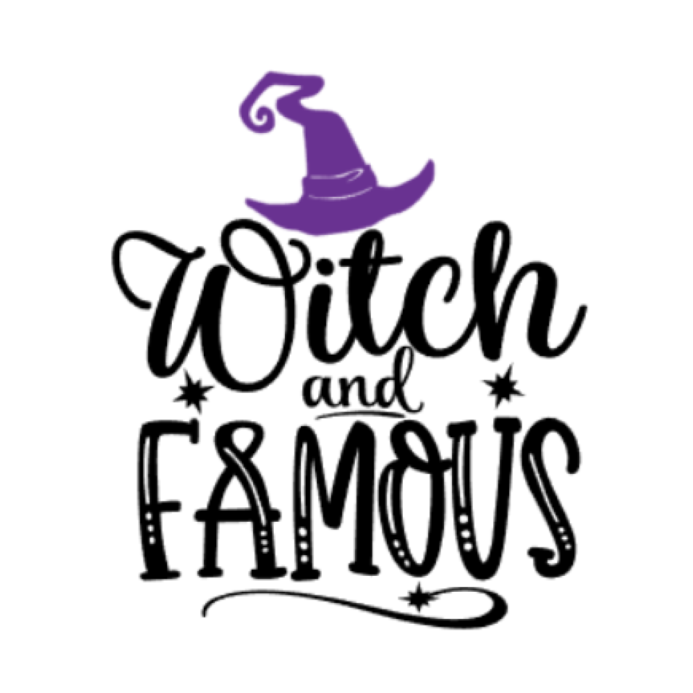 Superleuke sticker met tekst Witch and Famous.
