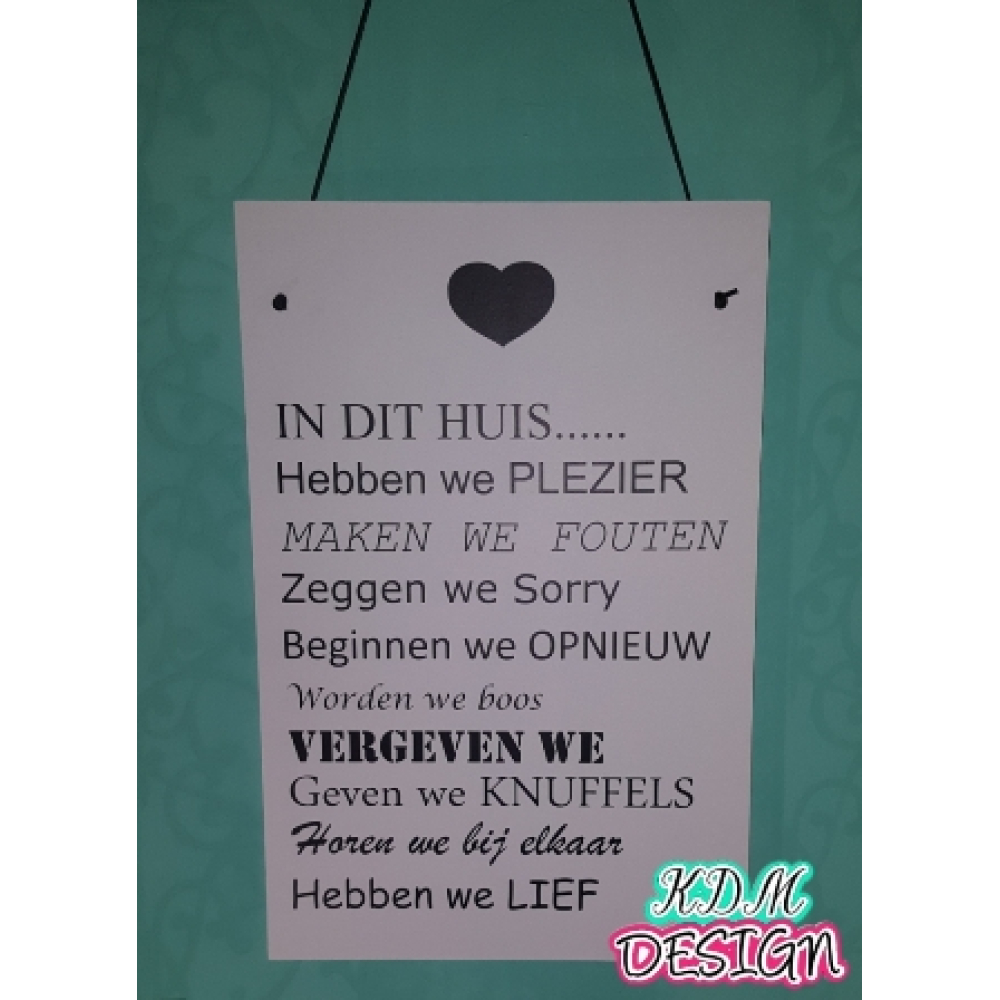 Tekstbord met tekst "In dit huis", maat 30x40 cm.