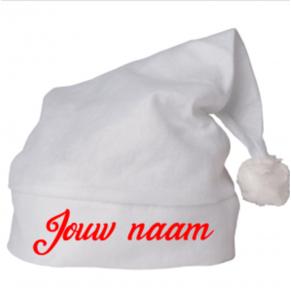 Kom dit jaar lekker origineel op het kerstdiner, met een witte kerstmuts, uiteraard te personaliseren met naam of tekst.